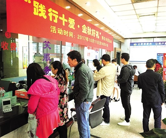 乘“踐行十愛·德耀甜城”春風(fēng),秉承“做好供水服務(wù)、提高服務(wù)品質(zhì)”之傳統(tǒng),今年來,內(nèi)江市水務(wù)有限責(zé)任公司(以下簡稱“水司”)推出了一系列“惠民、便民”服務(wù),希冀將溫暖傳遞到家家戶戶…… 金秋十月,惠民萬家 “請幫我預(yù)存800元……”“我要領(lǐng)口炒鍋……”10月11日上午9時(shí)許,“水司”玉溪路收費(fèi)廳里人潮涌動(dòng)、熱鬧非凡。 窗口前,預(yù)存水費(fèi)的用戶群整齊劃一地排著長隊(duì);登記處,工作人員井然有序地發(fā)放禮品、征集“作風(fēng)效能建設(shè)征求意見表”;庫房內(nèi),餐洗液、食用油、炒鍋等禮品完好裝箱存放,正“翹首以盼”地等待用戶前來認(rèn)領(lǐng)。 “惠”聚金秋,樂享好禮。據(jù)玉溪路收費(fèi)廳組長周麗萍介紹,為感謝廣大用戶對城市供排水事業(yè)的長期支持及幫助,“水司”特精心策劃、推出了為期21天的“金秋好禮”預(yù)存水費(fèi)活動(dòng)。即日起至10月31日,凡屬“水司”供水區(qū)域內(nèi)的生活用水戶(一表一戶),結(jié)清欠費(fèi)后預(yù)存相應(yīng)數(shù)額的水費(fèi),憑預(yù)存收據(jù),便可現(xiàn)場領(lǐng)取相應(yīng)的禮品回饋。 禮品為:預(yù)存200元,贈(zèng)送雕牌餐洗一桶或其他;預(yù)存400元,贈(zèng)送斑布生態(tài)竹紙一提或其他;預(yù)存600元,贈(zèng)送金龍魚葵花籽油(4L)一桶或其他;預(yù)存800元以上,贈(zèng)送蘇泊爾燉鍋一口或蘇泊爾炒鍋一口。 活動(dòng)一經(jīng)啟動(dòng),便獲得廣大用戶的熱烈反響。“今天上午,前來預(yù)存水費(fèi)、領(lǐng)取禮品的用戶絡(luò)繹不絕。”周麗萍說,截止到當(dāng)天10點(diǎn)半,僅玉溪路收費(fèi)廳參與活動(dòng)的用戶就突破了130人;而平安路、大千路、交通路、白馬鎮(zhèn)四處同步推行活動(dòng)的收費(fèi)廳,累計(jì)登記430余名參與用戶。 “前兩天,小區(qū)里都在沸沸揚(yáng)揚(yáng)地傳‘水司’將舉辦回饋活動(dòng)。”家住市中區(qū)甜城大道某小區(qū)的用戶張光華,今天特意抽空前來預(yù)存了800元水費(fèi),并領(lǐng)取了一口炒鍋。“繳水費(fèi)還能領(lǐng)禮品,這樣的好事我一定會(huì)在朋友圈大力宣傳,爭取讓身邊更多人知曉。” 左手一口燉鍋、右手一口炒鍋。預(yù)存1600元,抱得禮物歸,家住市中區(qū)臨江路某小區(qū)的用戶宋浩笑容滿面:“對于用水戶來說,這活動(dòng)真的‘接地氣’。”他希望,今后,“水司”能將類似的惠民傳統(tǒng)長久地延續(xù)下來。 繳納水費(fèi) 不跑“冤枉路” “今后您隨時(shí)隨地,只要用手機(jī)就可以繳費(fèi)了……” 近日,家住市中區(qū)臨江路528號(hào)的黃女士,一如既往地來到“水司”玉溪路收費(fèi)廳。當(dāng)她在排隊(duì)繳納水費(fèi)時(shí),“意外”地受到“水司”客戶服務(wù)部副經(jīng)理樊曉麗的熱情接待。 原來,“水司”已與中國建設(shè)銀行網(wǎng)站(手機(jī)銀行)、中國農(nóng)業(yè)銀行網(wǎng)站(手機(jī)銀行)、中國工商銀行網(wǎng)站(手機(jī)銀行)、四川省農(nóng)村信用社網(wǎng)站(手機(jī)銀行)取得了合作,用戶登錄以上銀行網(wǎng)站個(gè)人銀行(之一),進(jìn)入水費(fèi)繳費(fèi)界面便可繳納水費(fèi)。 此外,“水司”還相繼開通了“中國電信翼APP”、“支付寶APP”繳費(fèi)方式,用戶登陸上述APP(之一),在首頁點(diǎn)擊進(jìn)入生活繳費(fèi)界面,也可繳納水費(fèi)。 經(jīng)過樊曉麗一番詳細(xì)講解、實(shí)際操作,不到20分鐘,黃女士便熟練地掌握了手機(jī)繳費(fèi)的“技能”。“我現(xiàn)在50多歲了,每次繳費(fèi)跑來跑去,怪累人的。”她笑呵呵地說,“這下好了,今后再也不用跑‘冤枉路’了,這樣的服務(wù)太貼心了!” “手機(jī)繳費(fèi)的服務(wù),已開通了一段時(shí)間了。”“水司”客戶服務(wù)部負(fù)責(zé)人左海霞告訴記者,像這種“新”服務(wù),年輕人接受起來非常快。“但中年人可能就不那么‘習(xí)以為常’了。” 為將這項(xiàng)便捷、優(yōu)質(zhì)、高效的服務(wù)推送到各類人群,滿足廣大用戶對方便用水的需求,自5月中旬以來,“水司”便挑選了樊曉麗等8名優(yōu)秀服務(wù)員工,在每天繳費(fèi)的高峰期,分別派駐到東興區(qū)平安路收費(fèi)廳、大千路收費(fèi)廳以及市中區(qū)玉溪路收費(fèi)廳、交通路收費(fèi)廳,開展“代收水費(fèi)業(yè)務(wù)”專項(xiàng)宣傳活動(dòng)。 “截至目前,活動(dòng)的服務(wù)人群已達(dá)2000余人。”左海霞說,宣傳活動(dòng)將作為公司常態(tài)化工作,一直持續(xù)到今年年底。